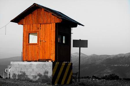 Checkpoint at the top of the hydroelectric power station. Small building for security personnel.