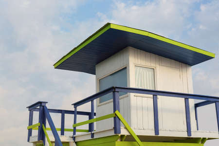 surveillance station lifeguard tower on a beach in blue sky in Lacanau France