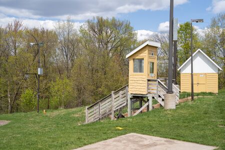 Maple Grove, Minnesota - May 6, 2020: The Elm Creek snow tubing and beginner downhill ski area, as shown in the spring offseason, closed