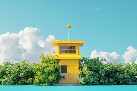 A lifeguard tower sitting on top of a sandy beach. Generative AI image.