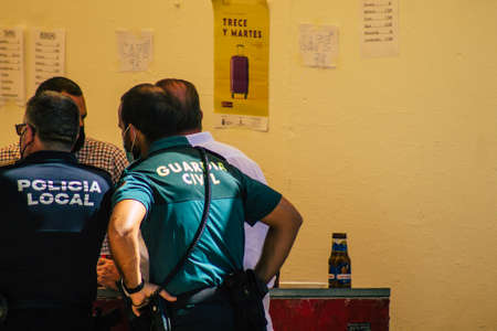 Carmona Spain September 26, 2021 Focus of local police patrolling at a religious ceremony in the streets of Carmona during the coronavirus outbreak hitting Spain