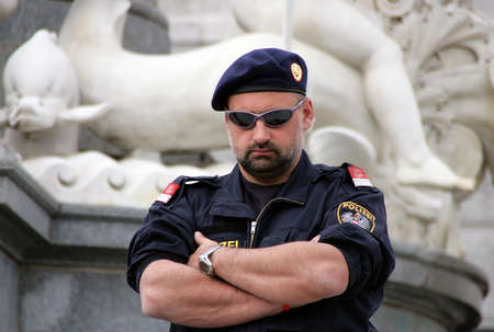 VIENNA, AUSTRIA - April 29: Unidentified policeman in sunglasses on April 29, 2009 in Vienna, Austria.