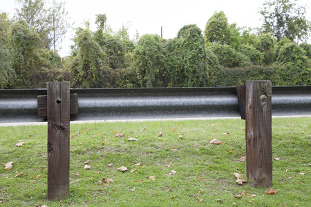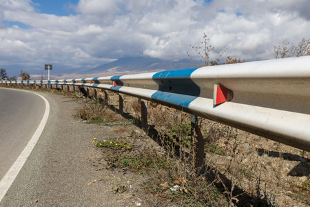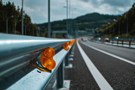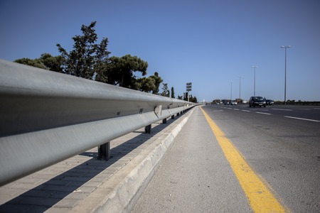 Safety barriers on highway. Anodized safety steel barrier. Enhancing highway safety.