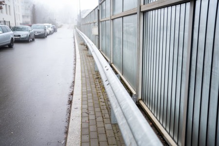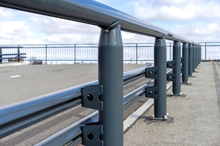 Guardrail traffic barrier on the side of a highway bridge in Malopolskie region, Poland. Transportation infrastructure.