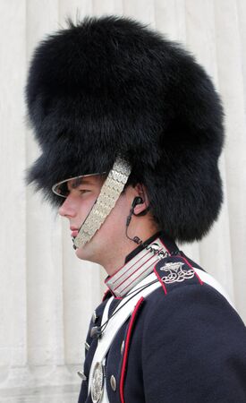 DENMARK, COPENHAGEN - MAY 15: A Danish soldier guarding Amalienborg Palace at May 15, 2012. This palace is the Danish Royal residence and a top tourist attraction as well.