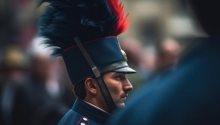 Military personnel in uniform standing proudly at attention, showing dedication, loyalty, and commitment to their nation during a formal parade or commemorative event