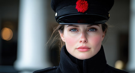 Serious woman in military hat