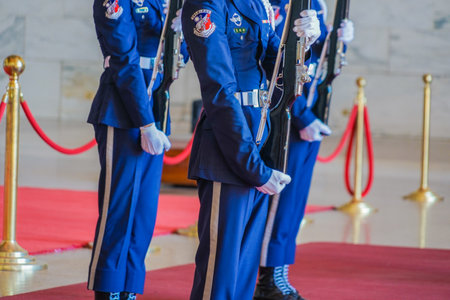 Taoyuan, Taiwan - May 2016: Taiwan's military police were performing handover ceremony in the mausoleum of the Chiang kai-shek