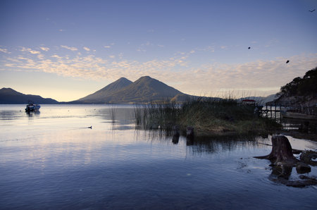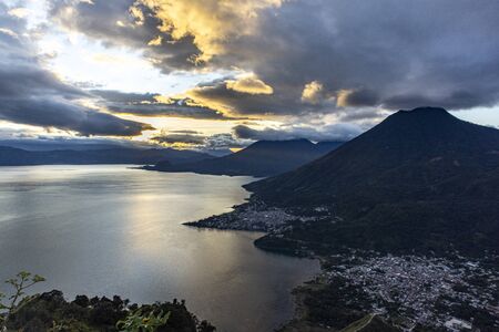 Beautiful lake Atitlan and volcanos in the highlands of Guatemala, Central America