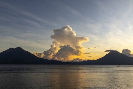 Clouds over the volcanic jungle landscape of Guatemala on Lake Atitlan (Lago de Atitlán).