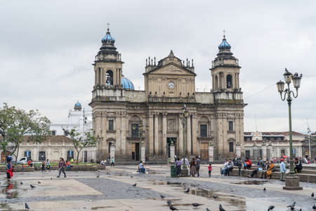 Guatemala City, Guatemala - October 01, 2019: Constitution Square and Metropolitan Cathedral of Guatemala.