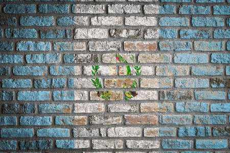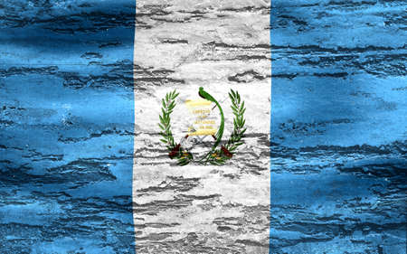 National flag of Guatemala depicting in paint colors on an old brick wall. Flag banner on brick wall background.