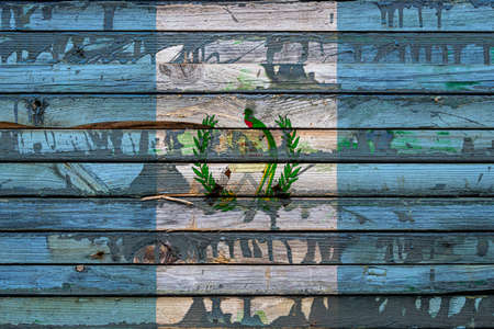 The national flag of Guatemala is painted on uneven boards. country symbol.