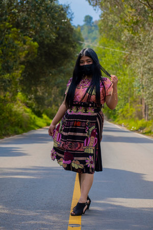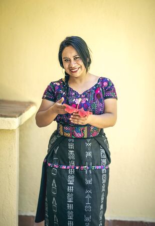 beautiful mayan girl in traditonal clothing in GuatemalaAmerica