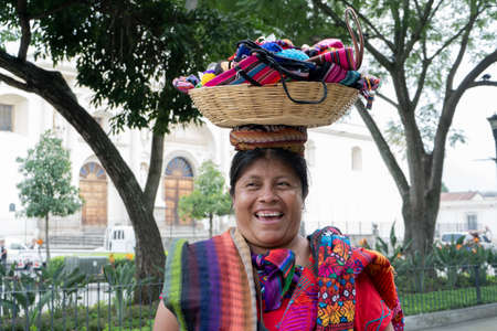 Antigua Guatemala, Guatemala-October 03 2019: A woman is selling her handicrafts in a park in Antigua.