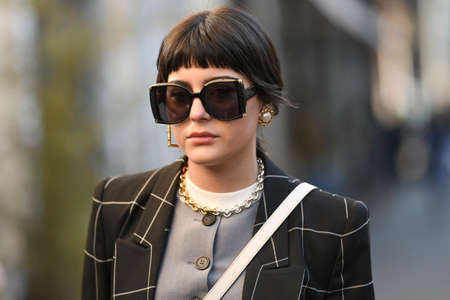 Milan, Italy - February 21, 2020: Street style appearance during Milan Fashion Week - streetstylefw20