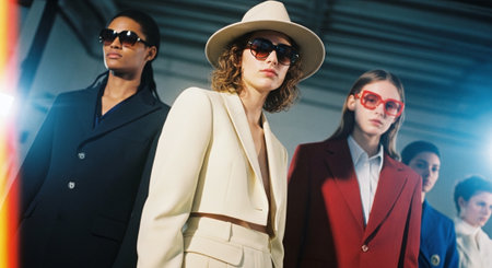 Models pose outside Gucci fashion show during Milan Women's Fashion Week in Milan.