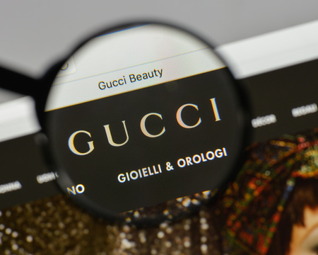 Milan, Italy - August 10, 2017: Gucci logo on the website homepage.