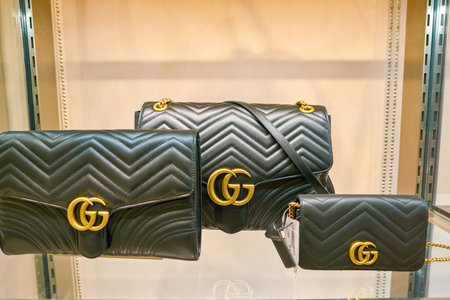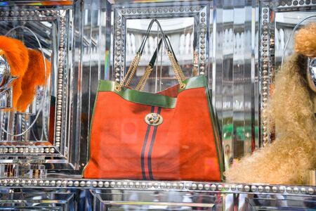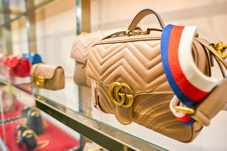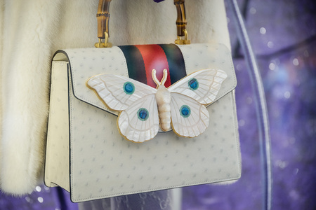 Milan, Italy - September 24, 2017: Gucci bag in a Gucci store in Milan. Fashion week