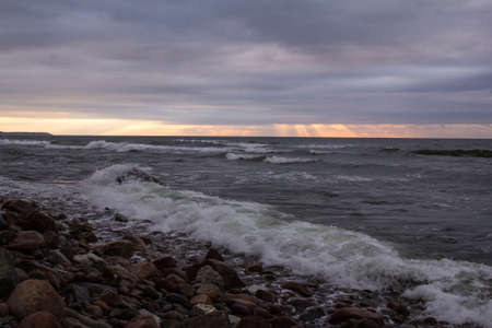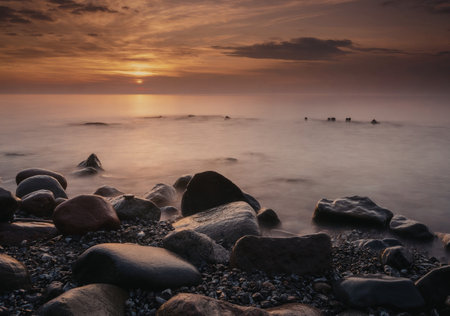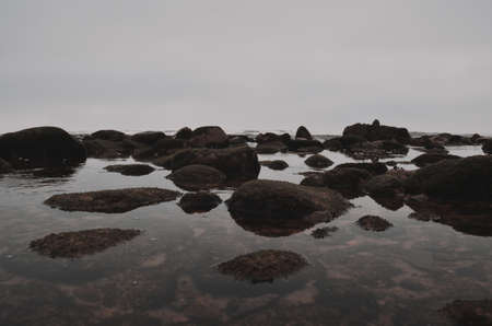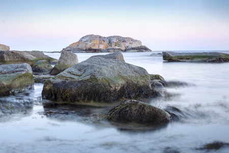 Rocky beach landscape at dusk. Kullaberg, Sweden.