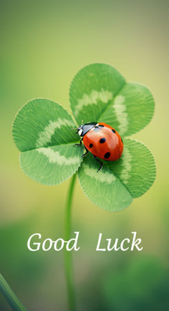 A vibrant ladybug perched delicately on a lush four-leaf clover, embodying the essence of good luck and fortune. This enchanting image captures nature's beauty and the charm of serendipity