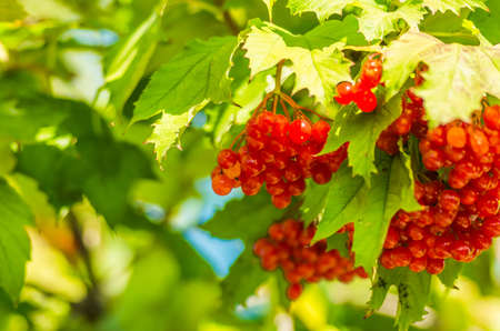 Red viburnum in the sun. High quality photo