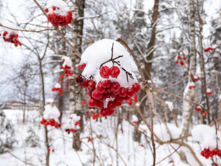 viburnum berries in winter,winter harvest on a tree