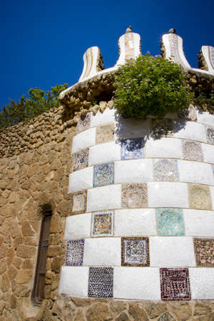Detail from the Park Güell located on Carmel Hill, Barcelona, Catalonia, Spain, architect Antoni Gaudi. Built 1900-1914, officially opened in 1926. From 1984 is part of UNESCO World Heritage Site.