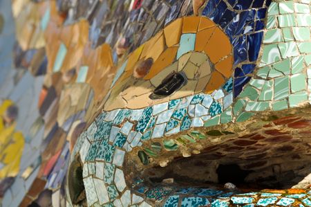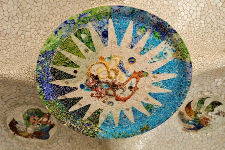 Mosaic of Park Guell designed by Antonio Gaudi in Barcelona