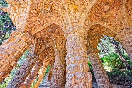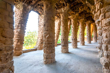 Park Guell Colonnaded Footpath, Barcelona, Spain, September 2016