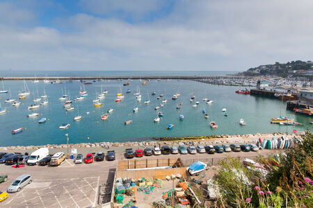 Brixham marina Devon England with boats on a calm day with blue sky during the heatwave of Summer 2013