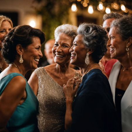 Three friends share laughter and drinks at an elegant party, showcasing a vibrant social atmosphere filled with joy and connection.