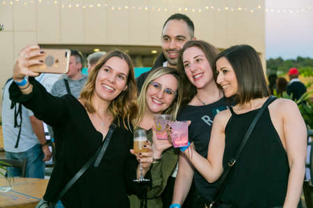 Johannesburg, South Africa - October 12 2017: Diverse Friends eating, drinking and generally enjoying a day out at a Food and Wine Fair