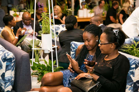 Johannesburg, South Africa - November 6 2014: African Female Friends eating, drinking and generally enjoying a day out at a Food and Wine Fair