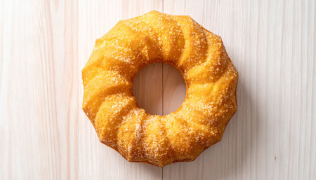 A captivating mini bundt cake with a luscious white glaze rests on a bright yellow background. Perfect for food photography, culinary promotions, and dessert inspirations.