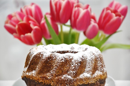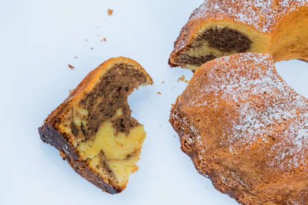 a marble cake for dessert. delicious sweets usually have a lot of calories.