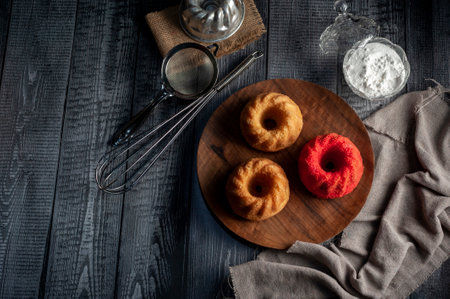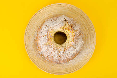 Food Concept homemade Gugelhupf, Guglhupf, Kugelhopf, kouglof bundt yeast cake of Central Europe on black background