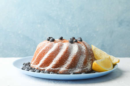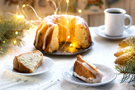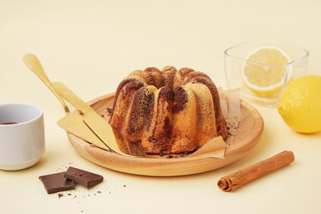 Delicious homemade bundt cake served with lemon glaze on a festive table for dessert enjoyment