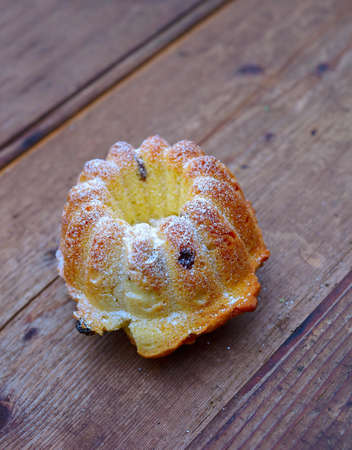 Homemade baking. Delicious vanilla raisin cupcake. Studio Photo