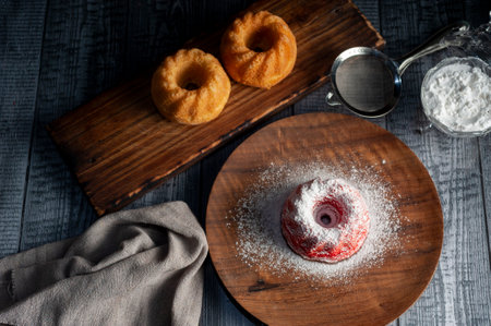 Kugelhopf Cake Powered With Icing Sugar On A Wooden Board Served As A Traditional Dish In Alsace Region France