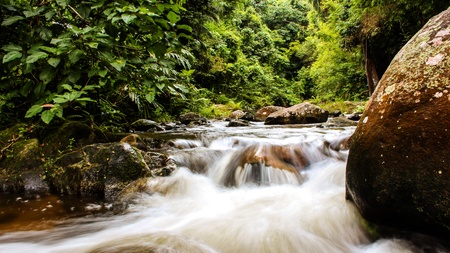 Long exposure image of a stream in cloud forest in Costa Rica