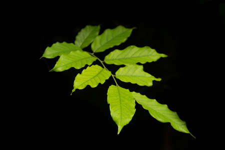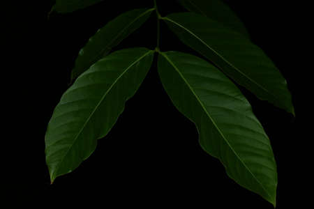Leaves, Leaf green plant close-up on dark black background