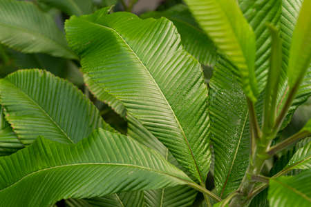 Close up of green leaves on the tree in the forest, Thailand.