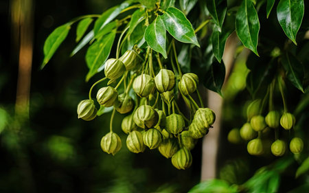 The Star anise in summer, Bright sunlight pierces dense foliage, the air feels hot, natural.
