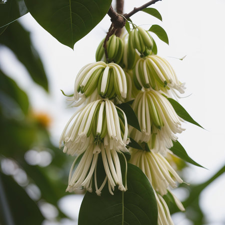flower climbing ylang-ylang, climbing ilang-ilang, manorangini, hara-champa kantali champa isolated on white background