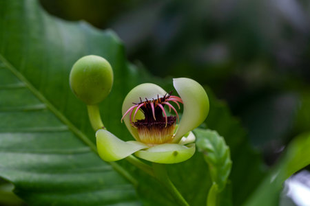 Seed pod of wild tropical tree native plant of Costa Rica jungle. Central America.
