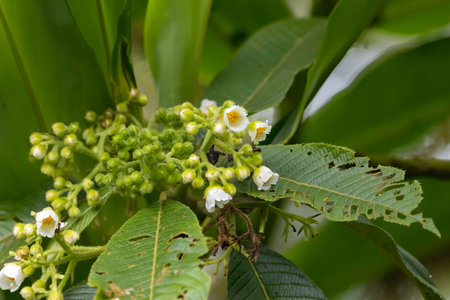 Blossoms and leaves of a candlenut tree, Aleurites moluccanus