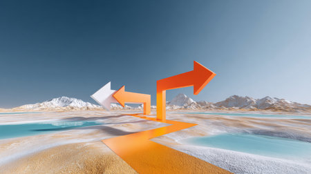 Dynamic Arrows Ascend Through Luminous Hues, Signifying Advancement and Growth in a Vibrant World