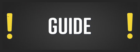 Guide. A blackboard with white text. Illustration with grunge text style.