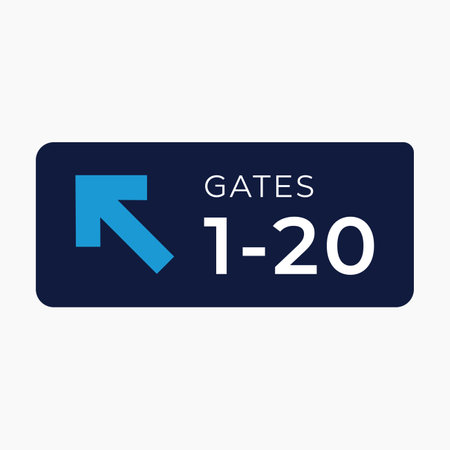 Airport information sign light panel giving directions with arrow in departure lounge for air travelllers.